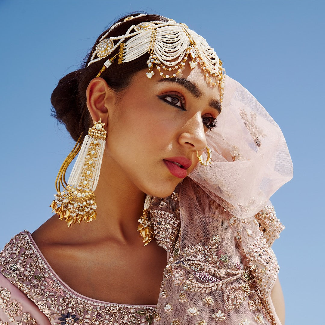 SJMP1008- Aditi Rao Hydari Style White Colour Gold Plated Jadau Kundan Mathapatti