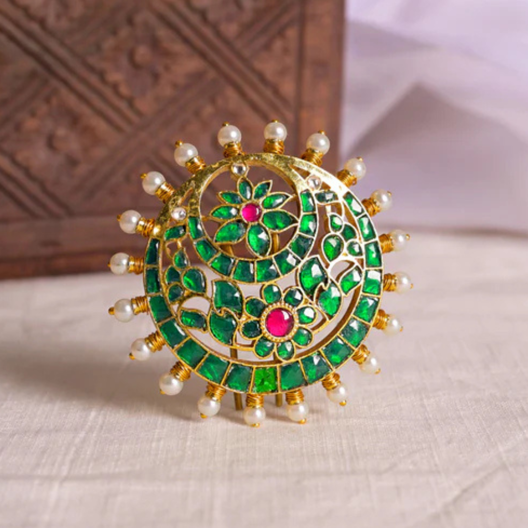 SJJP1001- White Colour Gold Plated Jadau Kundan Juda Pin