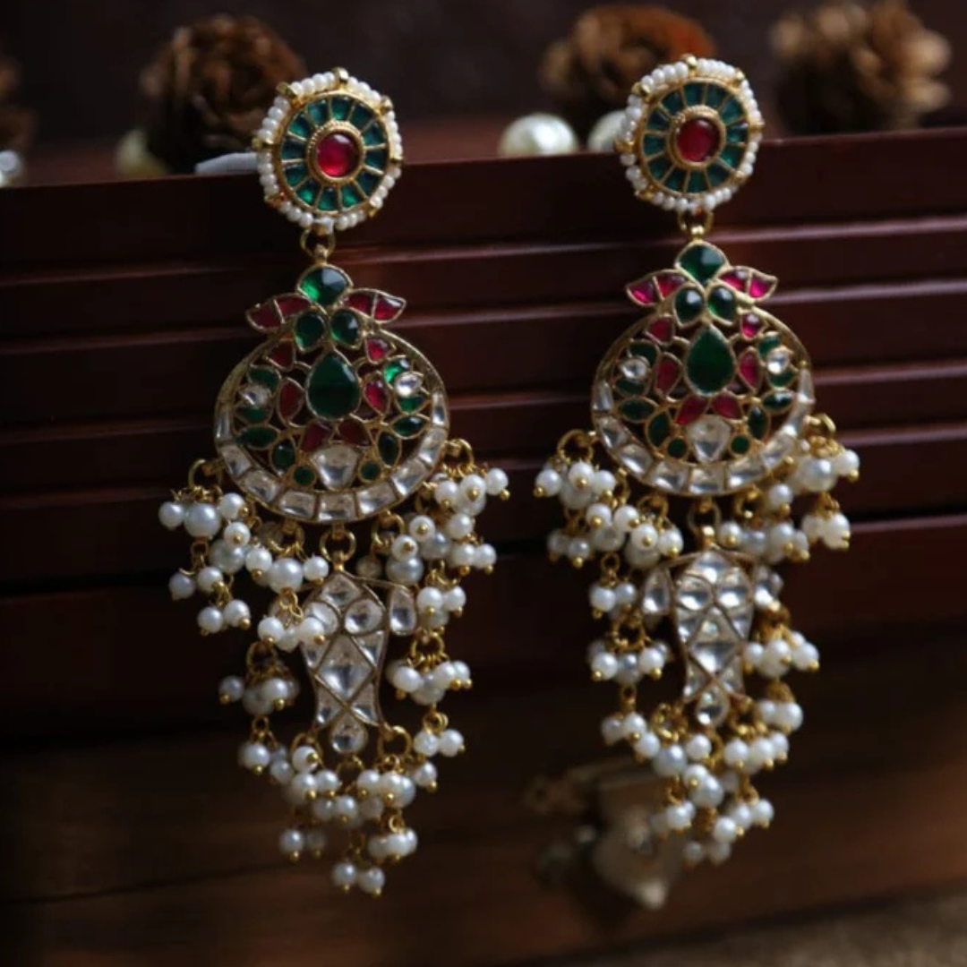 SJE1117- Multi Colour Gold Plated Jadau Kundan Temple Jhumki Earrings